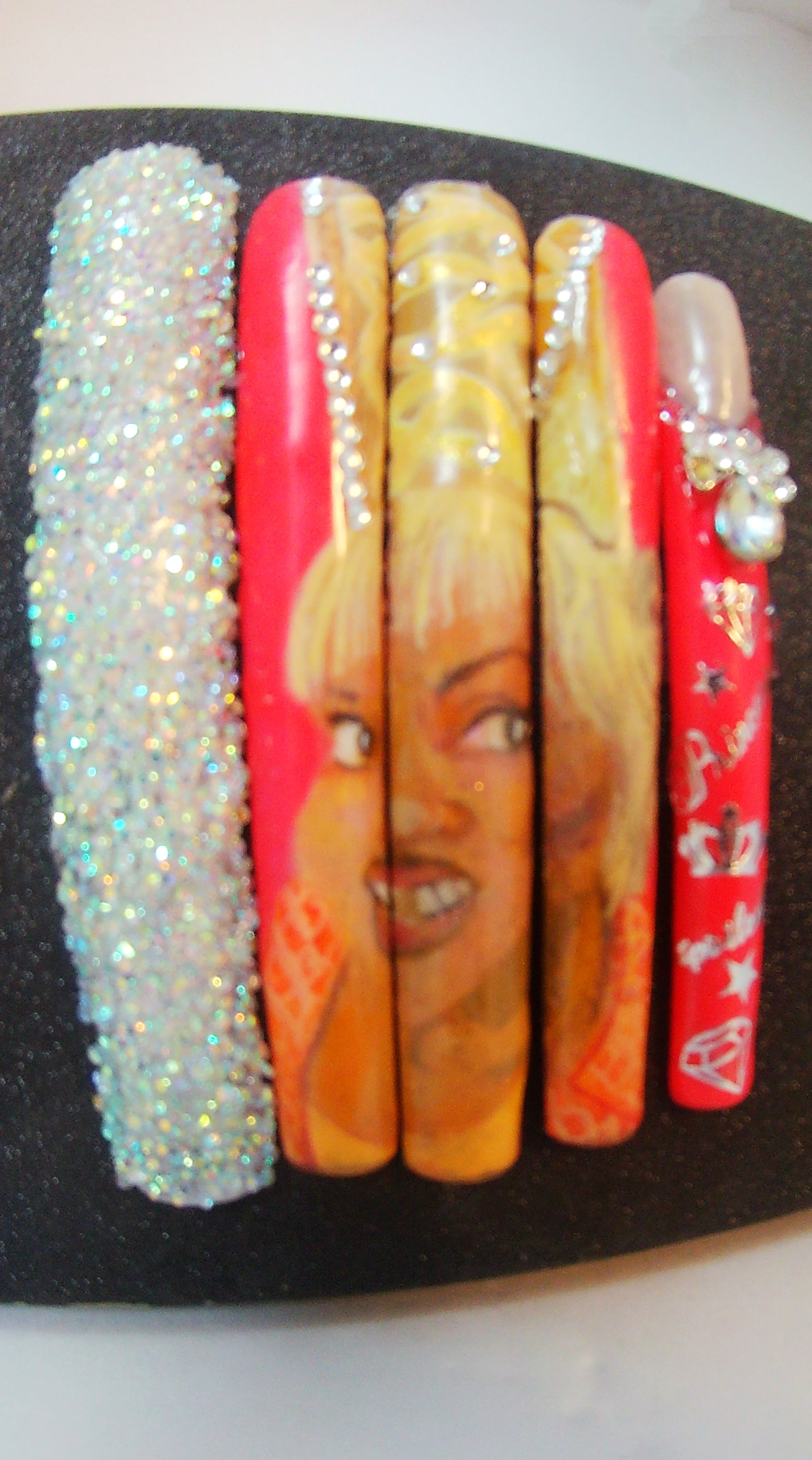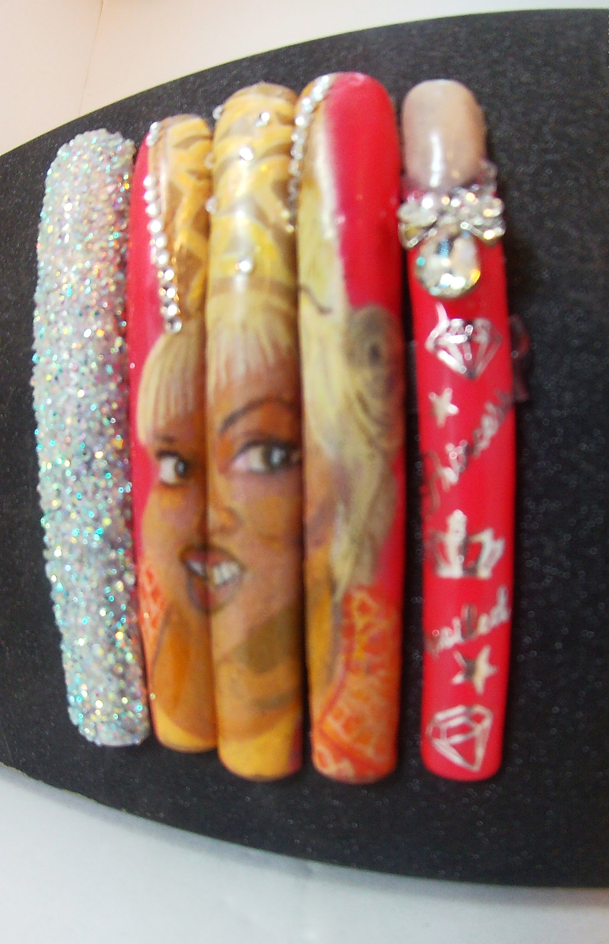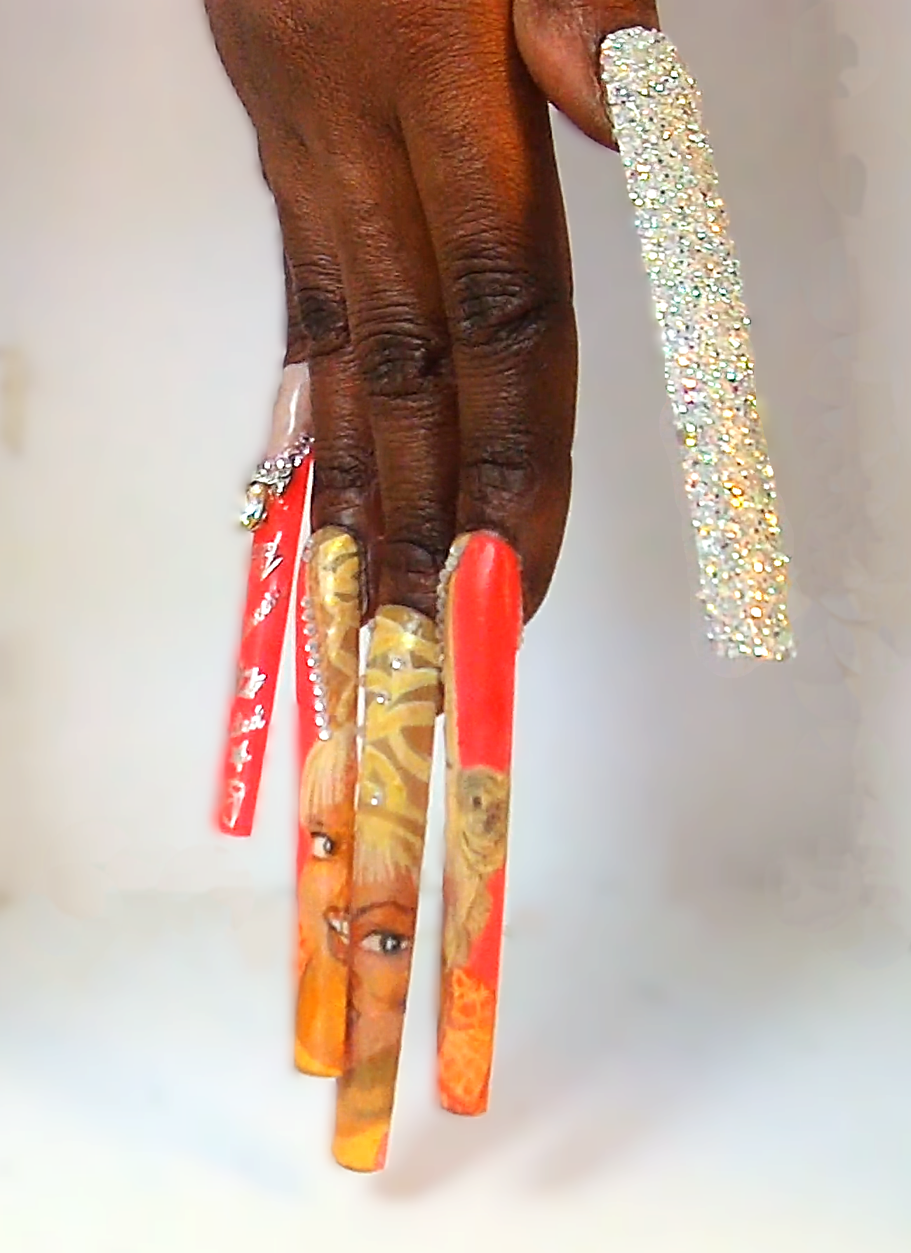 The iconic movie in black culture is recreated on a set of extendo square tip nails! You will get both Nisi (Halle's character) and Tamika (Ms. Natalie Desselle's character) on each hand, iced out thumbs and chunky jewels.