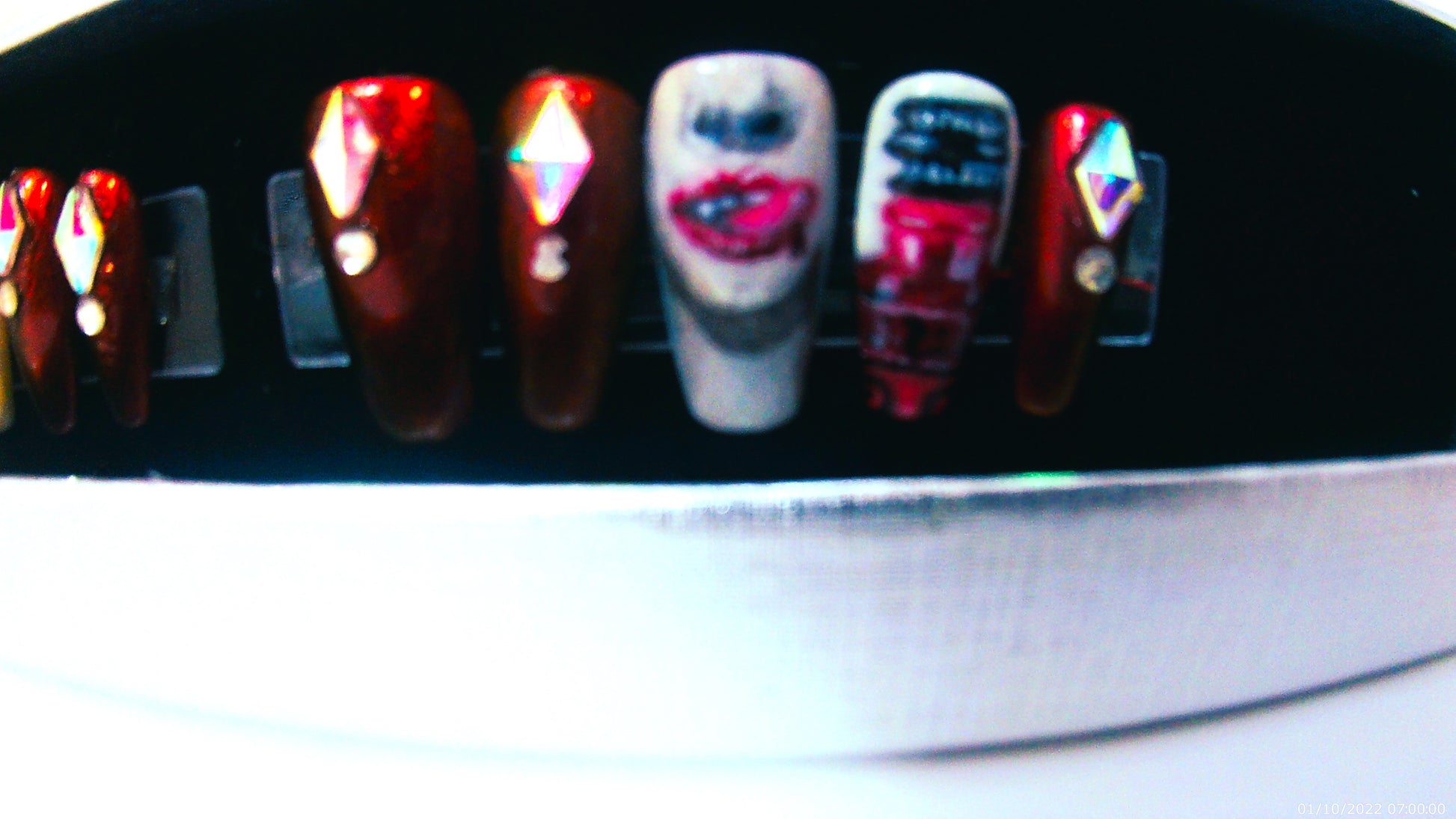 The girls that get it, get it. I'm a fangirl for this show so I thought I'd do this one for my fellow fangbangers out there. ;) Paintings of iconic True Blood imagery on a set of short coffin press on nails.